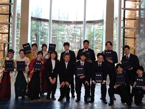 学位授与式がありました。浦瀬・後藤研究室からは,学部13名,修士1名がこの日,旅立っていきました。みなさん,おめでとうございます。